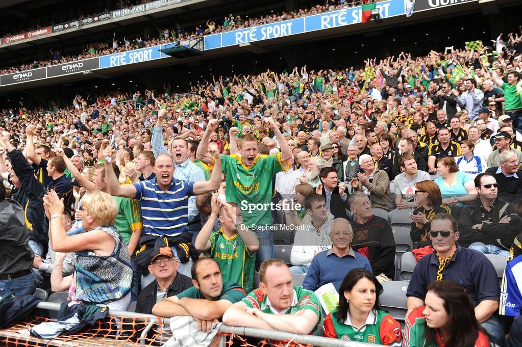 9 August 2009; Meath fans celebrate a score late in the game. GAA Football All-Ireland Senior Championship Quarter-Final, Meath v Mayo, Croke Park, Dublin. Picture credit: Stephen McCarthy / SPORTSFILE