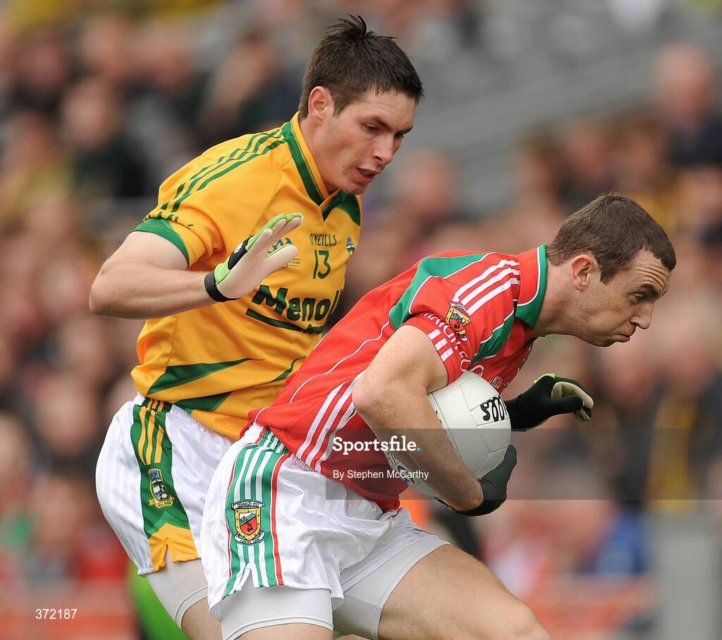 9 August 2009; Keith Higgins, Mayo, in action against David Bray, Meath. GAA Football All-Ireland Senior Championship Quarter-Final, Meath v Mayo, Croke Park, Dublin. Picture credit: Stephen McCarthy / SPORTSFILE