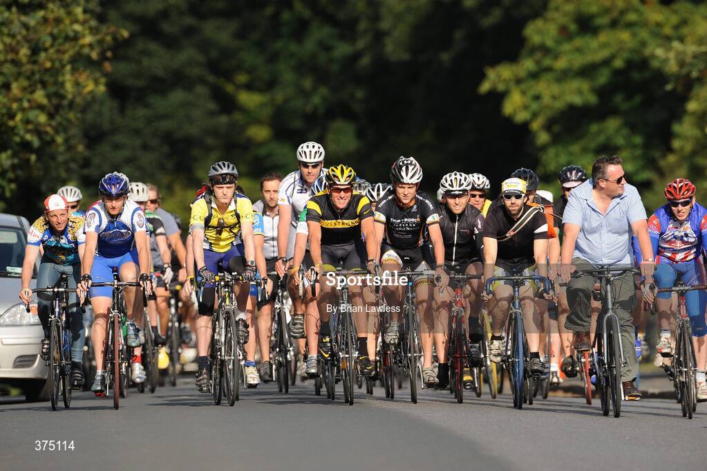 25 August 2009; Seven times winner of the Tour de France Lance Armstrong is joined by cycling fans for a ride in the Phoenix Park, Dublin. Picture credit: Brian Lawless / SPORTSFILE