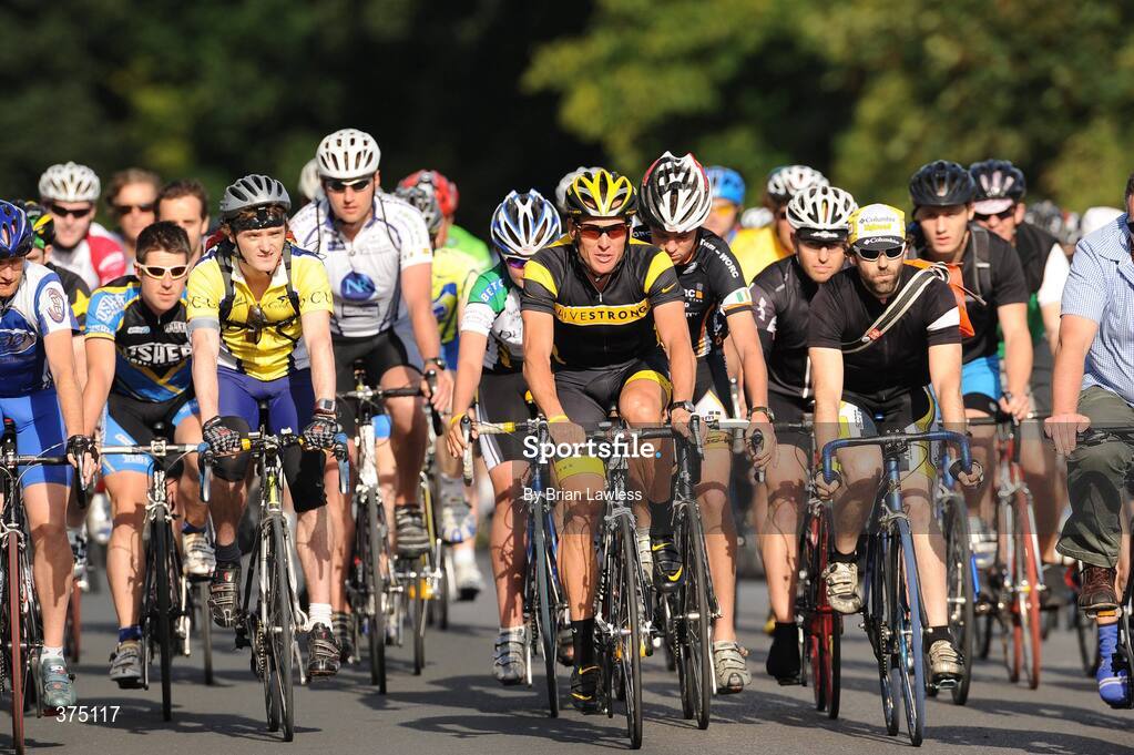 25 August 2009; Seven times winner of the Tour de France Lance Armstrong is joined by cycling fans for a ride in the Phoenix Park, Dublin. Picture credit: Brian Lawless / SPORTSFILE