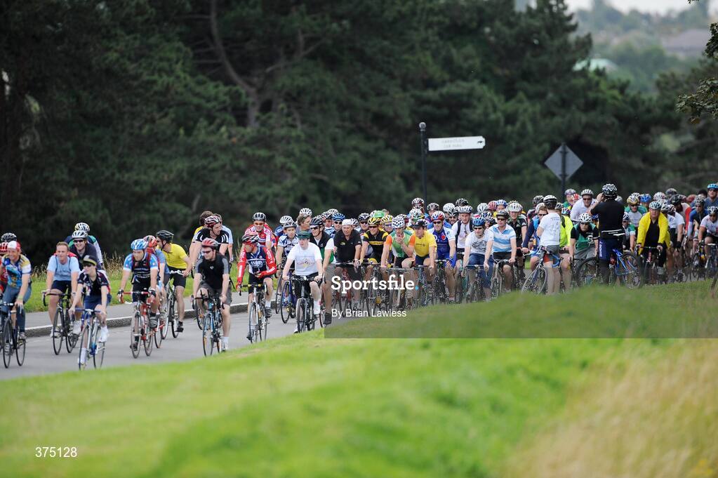 25 August 2009; Seven times winner of the Tour de France Lance Armstrong is joined by cycling fans for a ride in the Phoenix Park, Dublin. Picture credit: Brian Lawless / SPORTSFILE