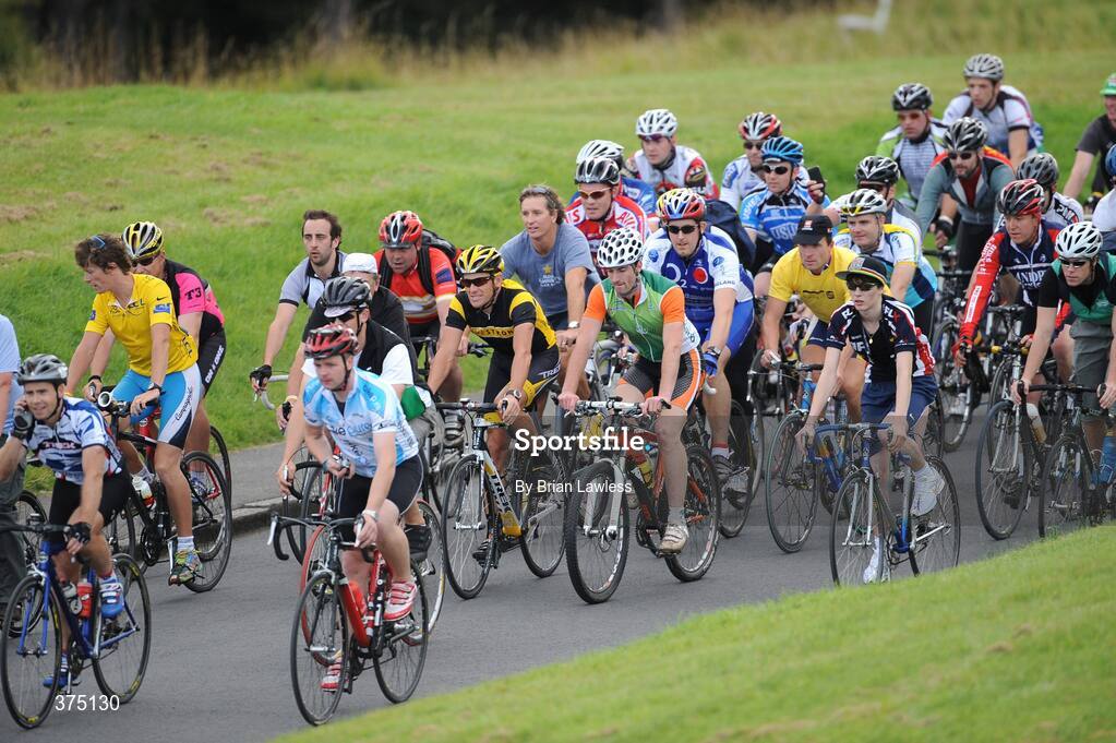 25 August 2009; Seven times winner of the Tour de France Lance Armstrong is joined by cycling fans for a ride in the Phoenix Park, Dublin. Picture credit: Brian Lawless / SPORTSFILE