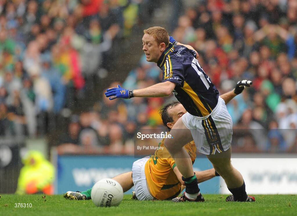 30 August 2009; Colm Cooper, Kerry, goes down under the challenge of Anthony Moyles, Meath, to win his side a penalty. GAA All-Ireland Senior Football Championship Semi-Final, Kerry v Meath, Croke Park, Dublin. Picture credit: Pat Murphy / SPORTSFILE