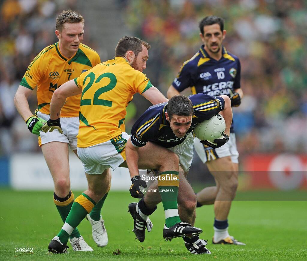 30 August 2009; Declan O'Sullivan, Kerry, in action against Caomhin King, left, and Michael Burke, Meath. GAA All-Ireland Senior Football Championship Semi-Final, Kerry v Meath, Croke Park, Dublin. Picture credit: Brian Lawless / SPORTSFILE
