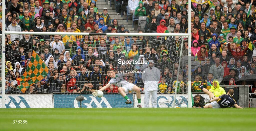 30 August 2009; The Meath goalkeeper is beaten by Darren O'Sullivan's third minute penalty for Kerry. GAA All-Ireland Senior Football Championship Semi-Final, Kerry v Meath, Croke Park, Dublin. Picture credit: Ray McManus / SPORTSFILE