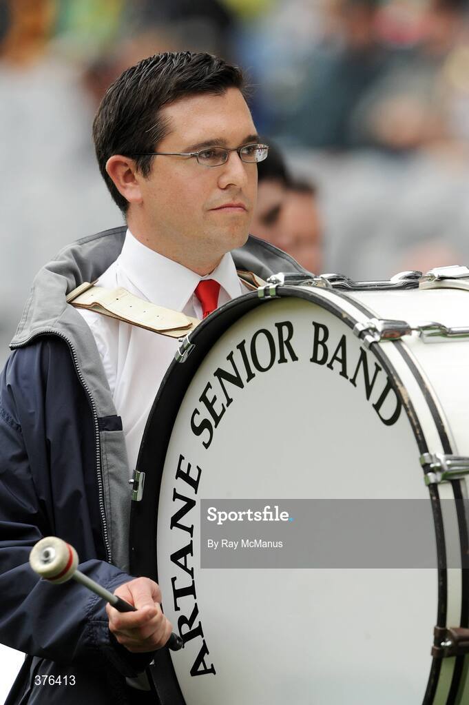 30 August 2009; Dublin Dail Deputy Terence Flanagan, T.D., a member of the Artane Senior band on parade, before the game. GAA All-Ireland Senior Football Championship Semi-Final, Kerry v Meath, Croke Park, Dublin. Picture credit: Ray McManus / SPORTSFILE
