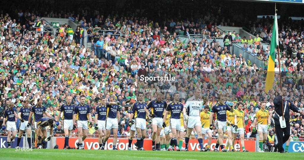 30 August 2009; The Kerry team, led by captain Darran O'Sullivan during the pre-match parade. GAA All-Ireland Senior Football Championship Semi-Final, Kerry v Meath, Croke Park, Dublin. Picture credit; Dáire Brennan / SPORTSFILE