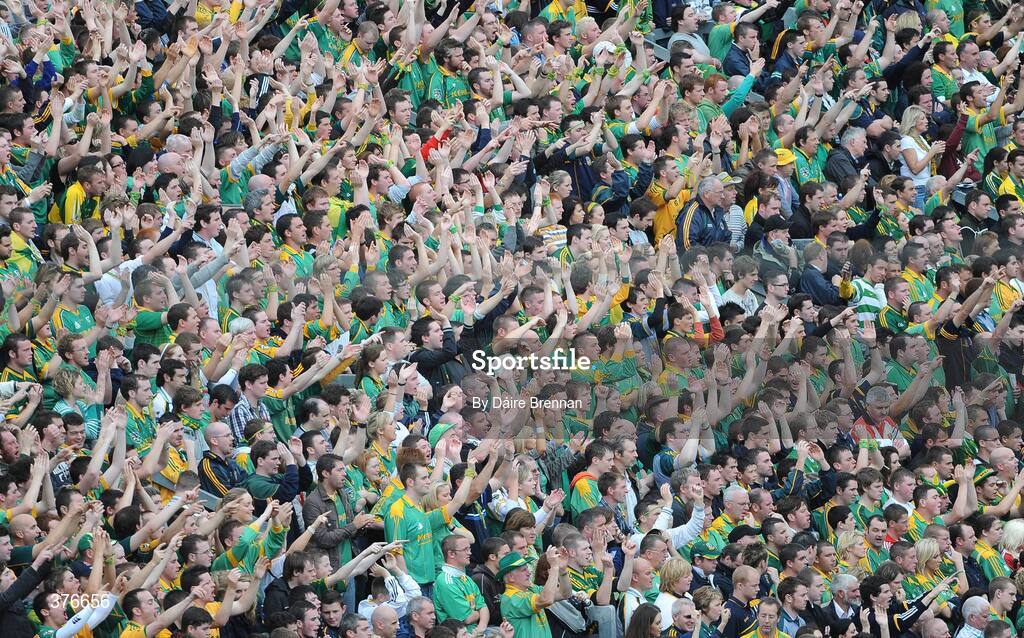 30 August 2009; Meath supporters continue to cheer on their side in the dying moments of the game. GAA All-Ireland Senior Football Championship Semi-Final, Kerry v Meath, Croke Park, Dublin. Picture credit; Dáire Brennan / SPORTSFILE