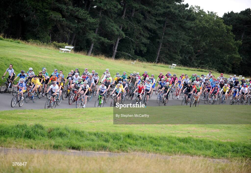 25 August 2009; Seven times winner of the Tour de France Lance Armstrong is joined by cycling fans for a ride in the Phoenix Park, Dublin. Picture credit: Stephen McCarthy / SPORTSFILE