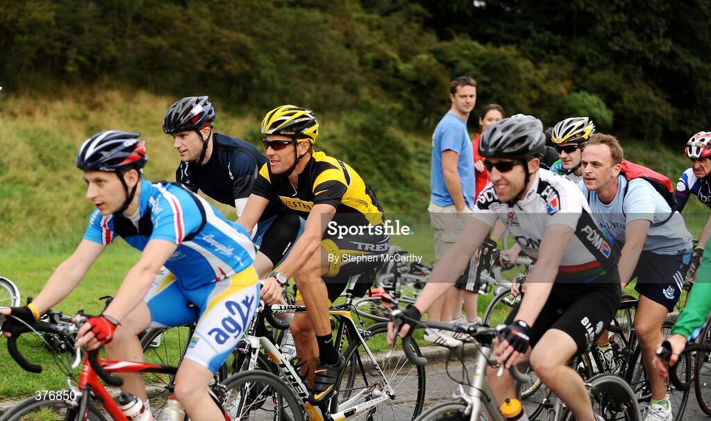 25 August 2009; Seven times winner of the Tour de France Lance Armstrong is joined by cycling fans for a ride in the Phoenix Park, Dublin. Picture credit: Stephen McCarthy / SPORTSFILE