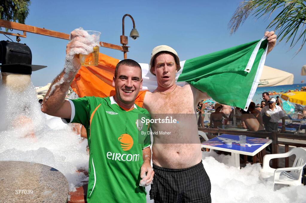 4 September 2009; Republic of Ireland fans Stephen Cusack, left and Dan Doonan, both from Killarney, Co.Kerry, in Ayia Napa ahead of their 2010 FIFA World Cup Qualifier against Cyprus on Saturday. Ayia Napa, Cyprus. Picture credit: David Maher / SPORTSFILE