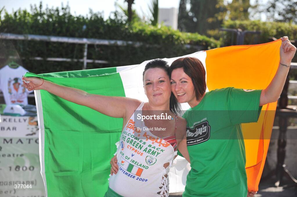 4 September 2009; Republic of Ireland fans Amanda Cunningham, left, from Belfast, and Kathrina McMath, from Newry, Co.Down, in Ayia Napa ahead of their 2010 FIFA World Cup Qualifier against Cyprus on Saturday. Ayia Napa, Cyprus. Picture credit: David Maher / SPORTSFILE