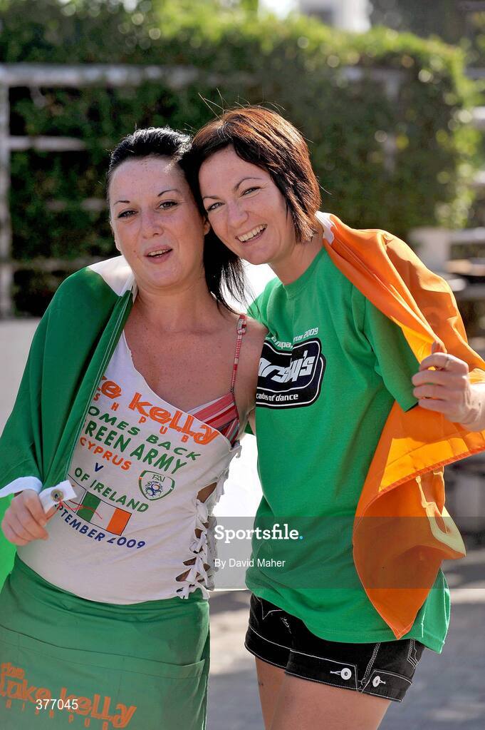 4 September 2009; Republic of Ireland fans Amanda Cunningham, left, from Belfast, and Kathrina McMath, from Newry, Co.Down, in Ayia Napa ahead of their 2010 FIFA World Cup Qualifier against Cyprus on Saturday. Ayia Napa, Cyprus. Picture credit: David Maher / SPORTSFILE