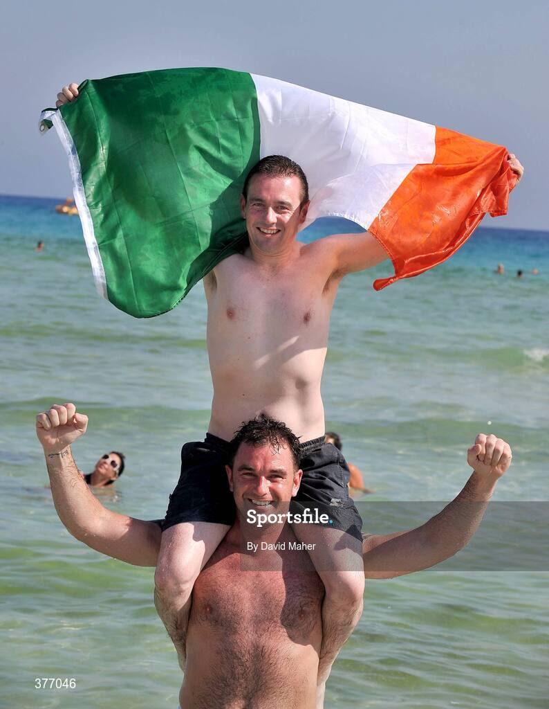 4 September 2009; Republic of Ireland fans Ger Kenny, top, and Paddy Hayden, both from Donnycarney, Co. Dublin, in Ayia Napa ahead of their 2010 FIFA World Cup Qualifier against Cyprus on Saturday. Ayia Napa, Cyprus. Picture credit: David Maher / SPORTSFILE