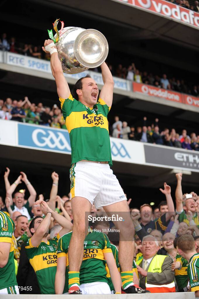 20 September 2009; Tadhg Kennelly, Kerry, lifts the Sam Maguire Cup. GAA Football All-Ireland Senior Championship Final, Kerry v Cork, Croke Park, Dublin. Picture credit: Ray McManus / SPORTSFILE
