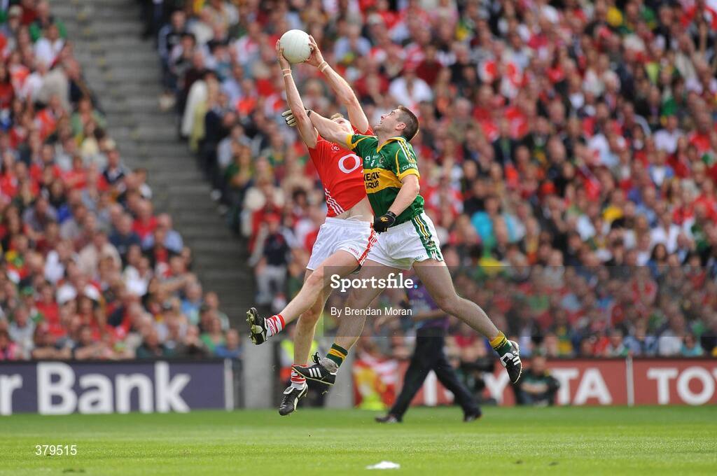 20 September 2009; Nicholas Murphy, Cork, and Darragh O Se, Kerry, contest a kick out. GAA Football All-Ireland Senior Championship Final, Kerry v Cork, Croke Park, Dublin. Picture credit: Brendan Moran / SPORTSFILE