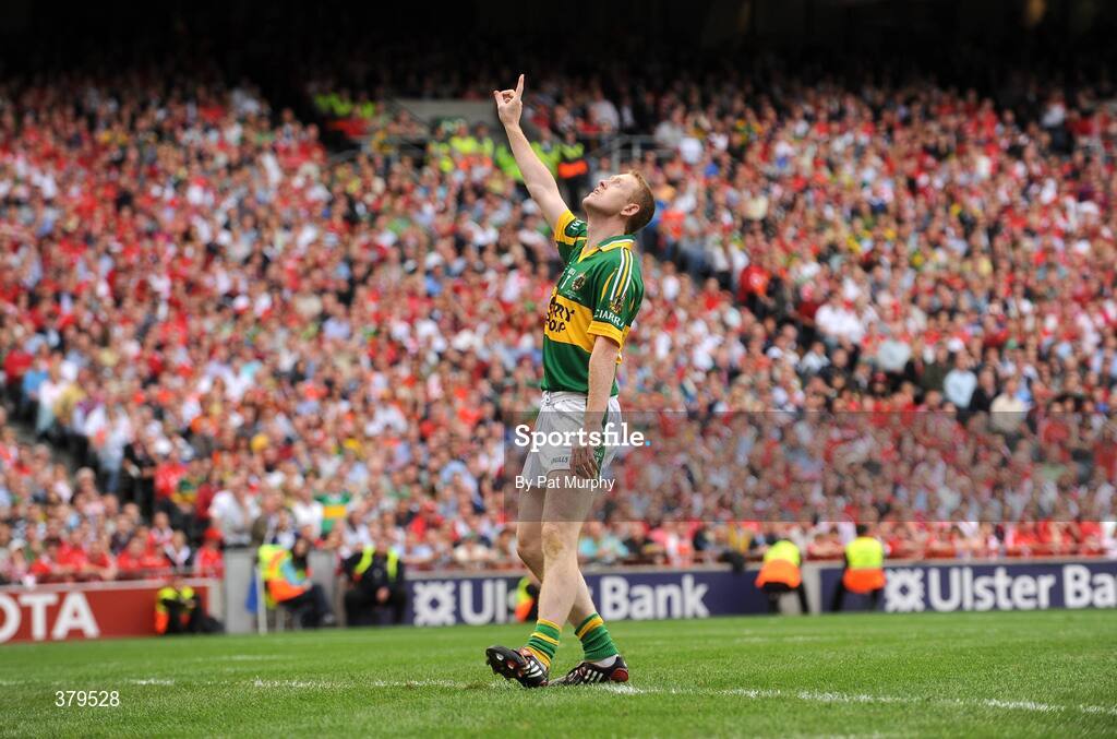20 September 2009; Colm Cooper, Kerry, celebrates as he watches a late score go over the bar. GAA Football All-Ireland Senior Championship Final, Kerry v Cork, Croke Park, Dublin. Picture credit: Pat Murphy / SPORTSFILE