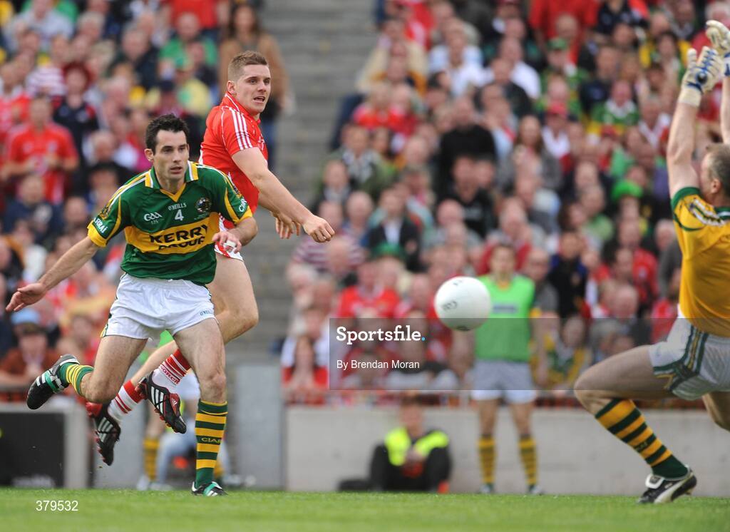 20 September 2009; Daniel Goulding, Cork, has his shot saved by Kerry goalkeeper Diarmuid Murphy. GAA Football All-Ireland Senior Championship Final, Kerry v Cork, Croke Park, Dublin. Picture credit: Brendan Moran / SPORTSFILE