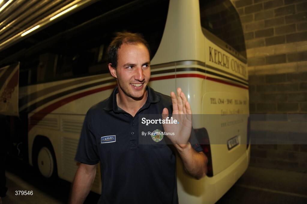 20 September 2009; Kerry star Tadhg Kennelly waves to supporters as he prepares to board the team bus. GAA Football All-Ireland Senior Championship Final, Kerry v Cork, Croke Park, Dublin. Picture credit: Ray McManus / SPORTSFILE