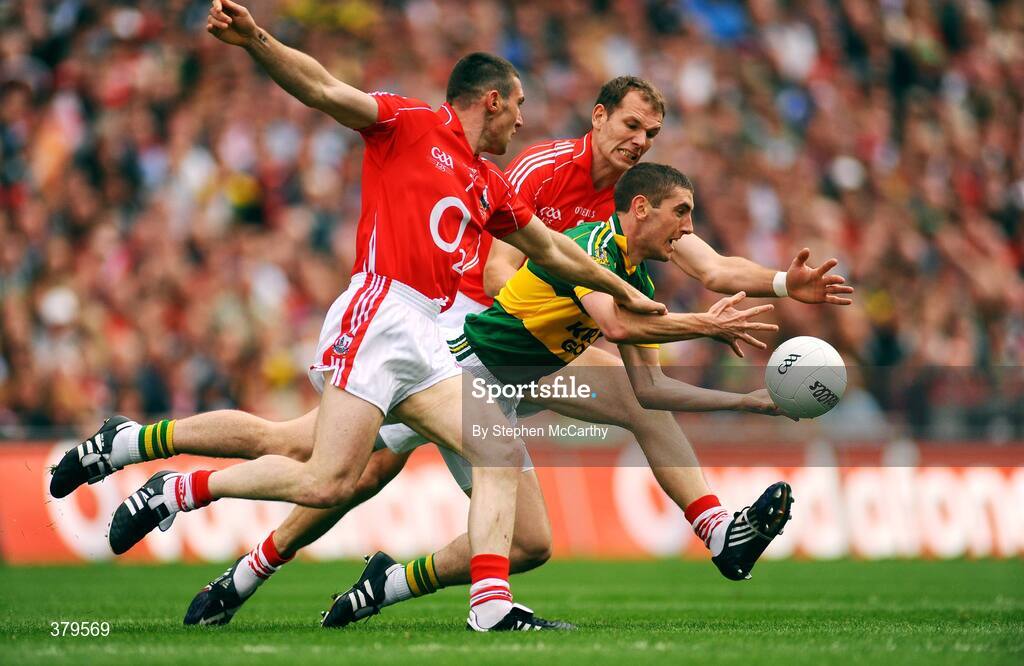 20 September 2009; Killian Young, Kerry, in action against Noel O'Leary, left, and Alan O'Connor, Cork. GAA Football All-Ireland Senior Championship Final, Kerry v Cork, Croke Park, Dublin. Picture credit: Stephen McCarthy / SPORTSFILE