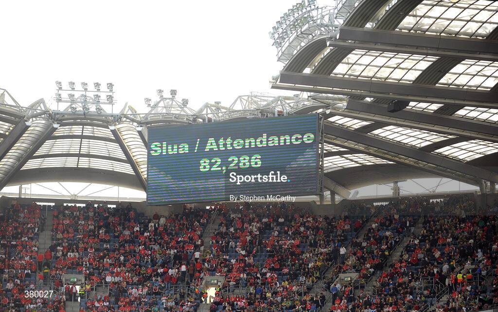20 September 2009; A general view of the attendance figure of 82,286. GAA Football All-Ireland Senior Championship Final, Kerry v Cork, Croke Park, Dublin. Picture credit: Stephen McCarthy / SPORTSFILE