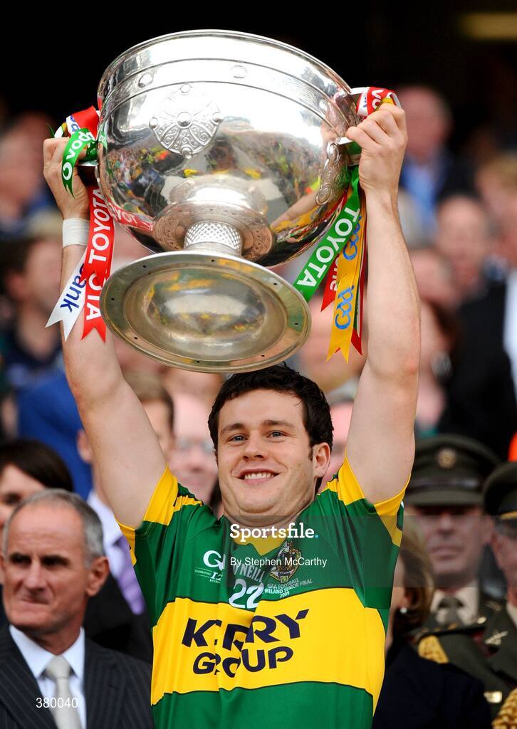 20 September 2009; Padraig Reidy, Kerry, lifts the Sam Maguire cup. GAA Football All-Ireland Senior Championship Final, Kerry v Cork, Croke Park, Dublin. Picture credit: Stephen McCarthy / SPORTSFILE