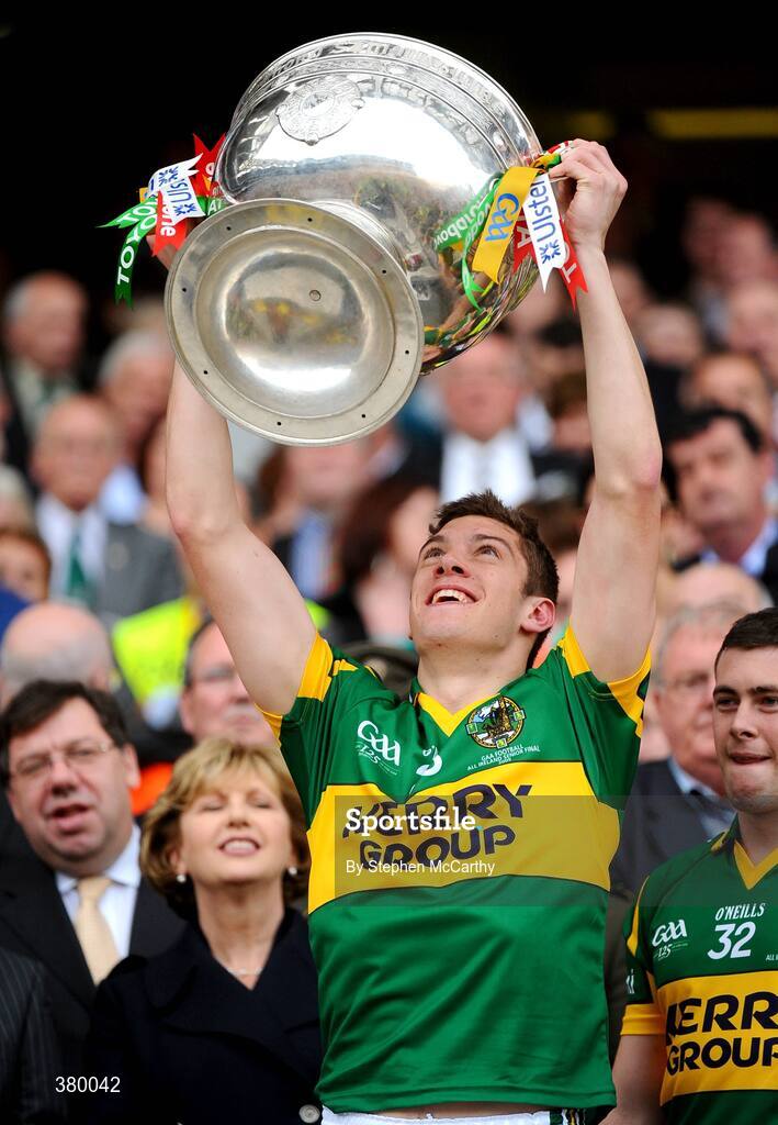 20 September 2009; David Moran, Kerry, lifts the Sam Maguire cup. GAA Football All-Ireland Senior Championship Final, Kerry v Cork, Croke Park, Dublin. Picture credit: Stephen McCarthy / SPORTSFILE