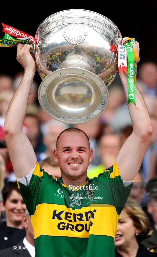 20 September 2009; Michael Quirke, Kerry, lifts the Sam Maguire cup. GAA Football All-Ireland Senior Championship Final, Kerry v Cork, Croke Park, Dublin. Picture credit: Stephen McCarthy / SPORTSFILE