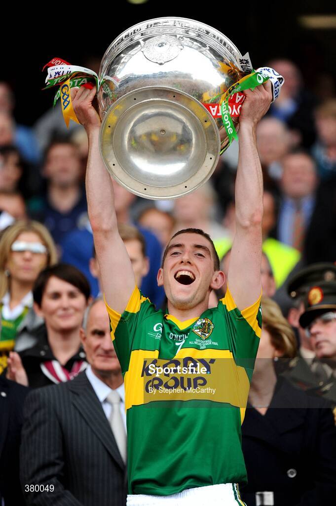 20 September 2009; Killian Young, Kerry, lifts the Sam Maguire cup. GAA Football All-Ireland Senior Championship Final, Kerry v Cork, Croke Park, Dublin. Picture credit: Stephen McCarthy / SPORTSFILE