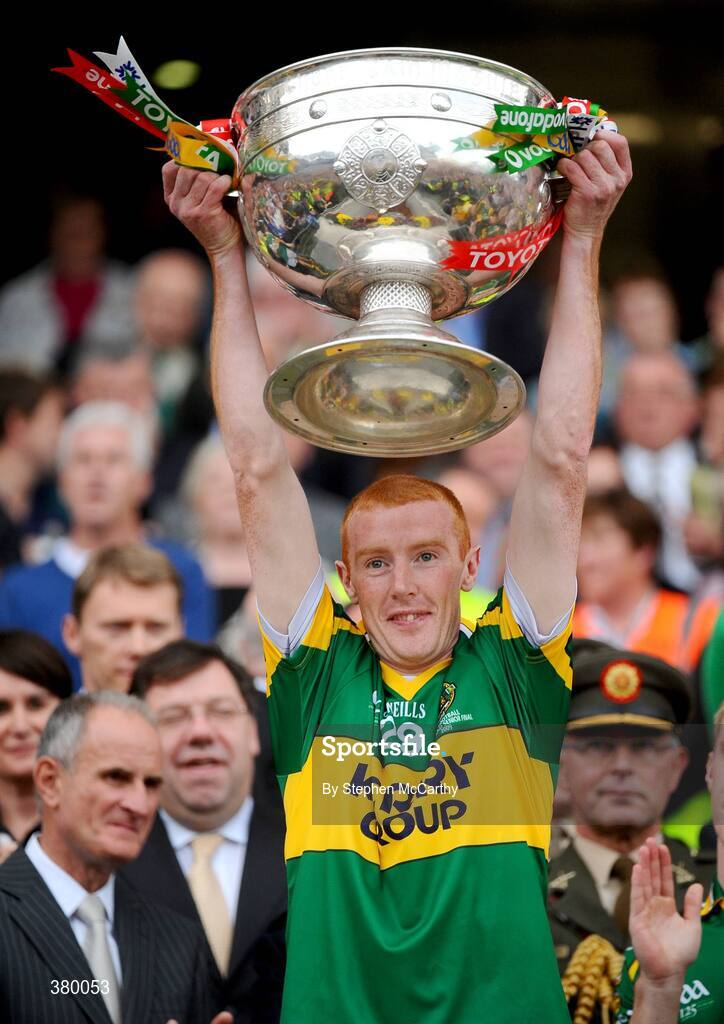 20 September 2009; Maurice Corridan, Kerry, lifts the Sam Maguire cup. GAA Football All-Ireland Senior Championship Final, Kerry v Cork, Croke Park, Dublin. Picture credit: Stephen McCarthy / SPORTSFILE
