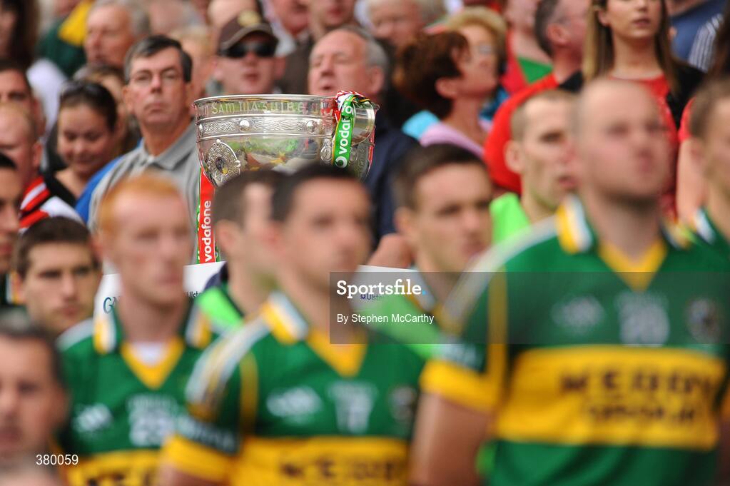 20 September 2009; A general view of the Sam Maguire cup during the National Anthem. GAA Football All-Ireland Senior Championship Final, Kerry v Cork, Croke Park, Dublin. Picture credit: Stephen McCarthy / SPORTSFILE
