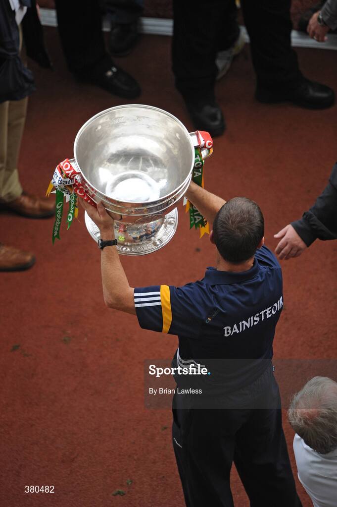 20 September 2009; Kerry manager Jack O'Connor holds the Sam Maguire. GAA Football All-Ireland Senior Championship Final, Kerry v Cork, Croke Park, Dublin. Picture credit: Brian Lawless / SPORTSFILE