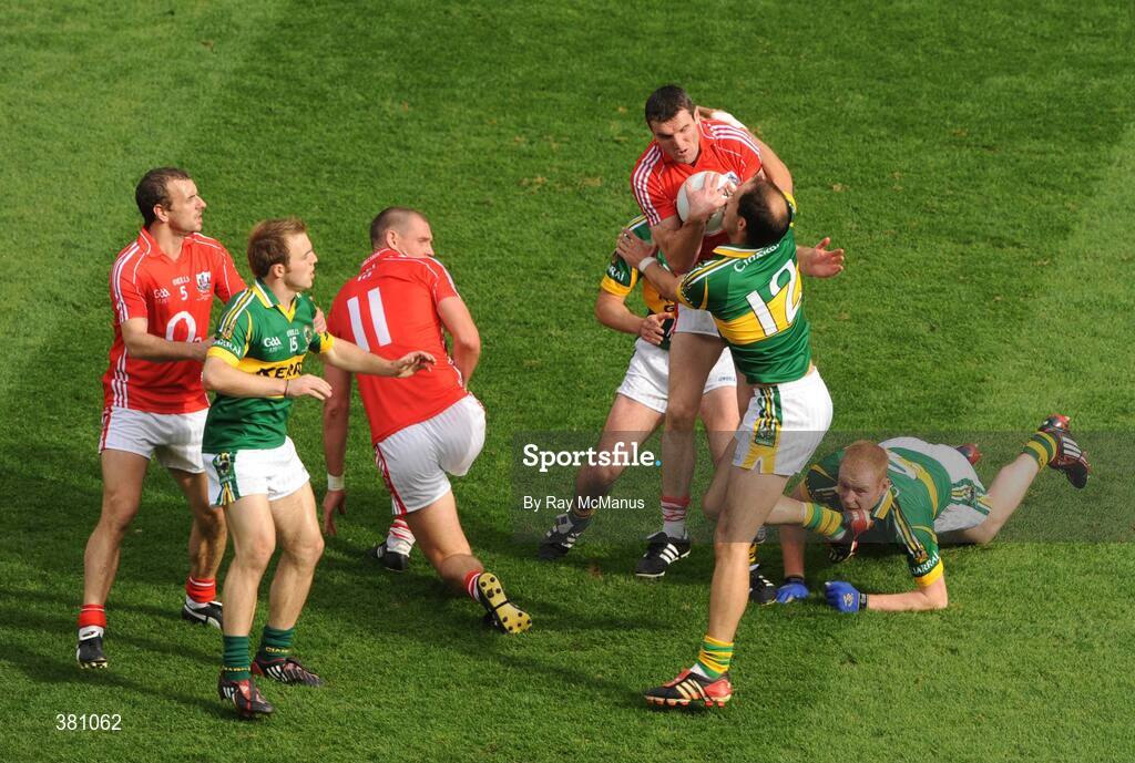 20 September 2009; Graham Canty, Cork, is tackled by Tadhg Kennelly, Kerry. GAA Football All-Ireland Senior Championship Final, Kerry v Cork, Croke Park, Dublin. Picture credit: Ray McManus / SPORTSFILE