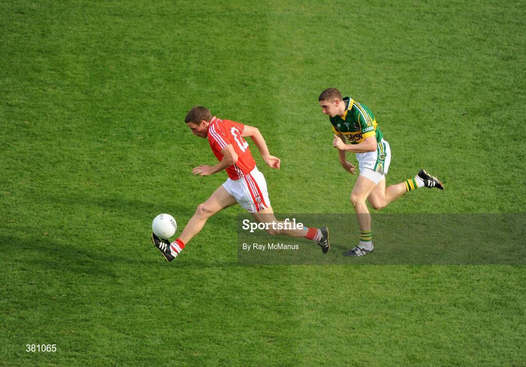 20 September 2009; Patrick Kelly, Cork, in action against Killian Young, Kerry. GAA Football All-Ireland Senior Championship Final, Kerry v Cork, Croke Park, Dublin. Picture credit: Ray McManus / SPORTSFILE
