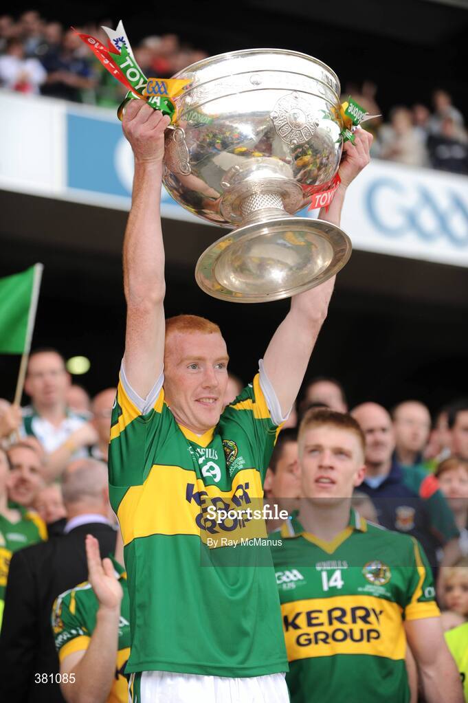 20 September 2009; Maurice Corridan, Kerry, lifts the Sam Maguire cup. GAA Football All-Ireland Senior Championship Final, Kerry v Cork, Croke Park, Dublin. Picture credit: Ray McManus / SPORTSFILE