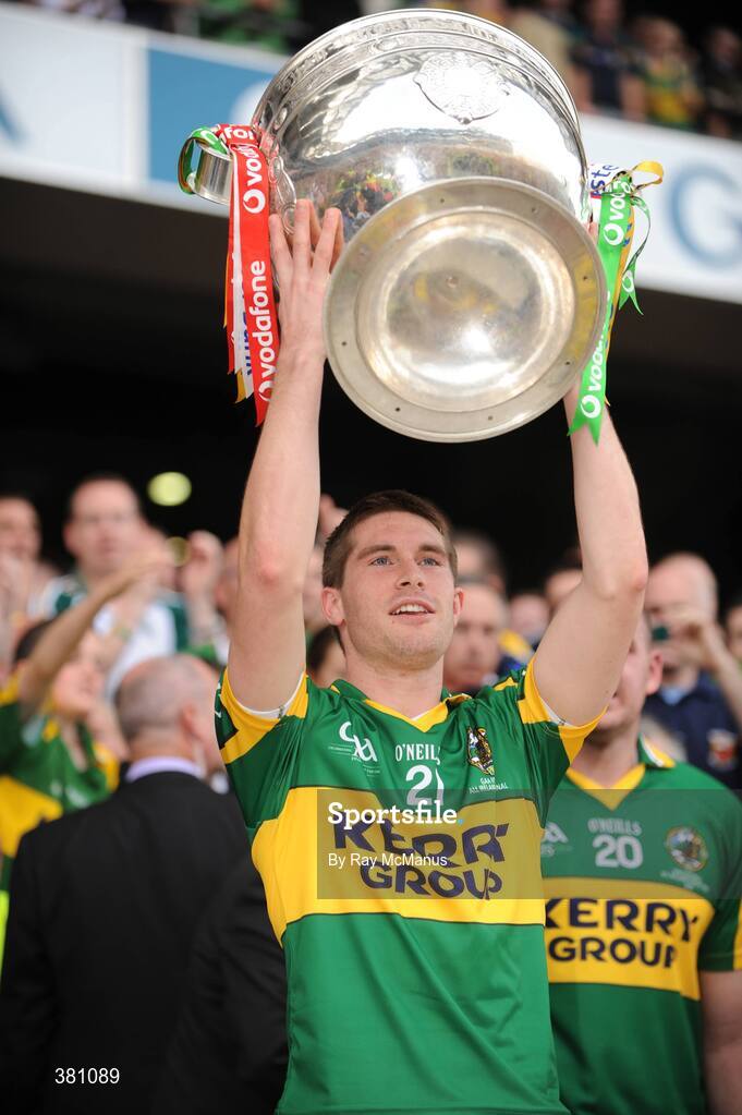 20 September 2009; Paul O’Connor, Kerry, lifts the Sam Maguire cup. GAA Football All-Ireland Senior Championship Final, Kerry v Cork, Croke Park, Dublin. Picture credit: Ray McManus / SPORTSFILE