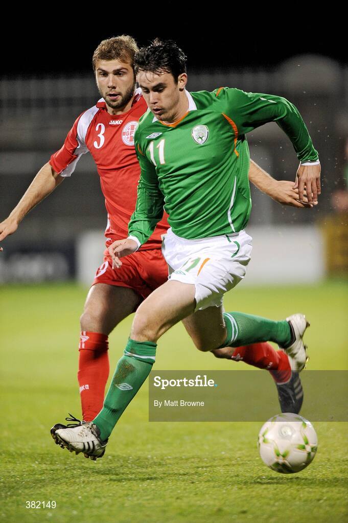 9 October 2009; Keith Treacy, Republic of Ireland, in action against Gulverd Tomashvili, Georgia. UEFA European U21 Championship Qualifier, Republic of Ireland v Georgia, Tallaght Stadium, Tallaght, Dublin. Picture credit: Matt Browne / SPORTSFILE