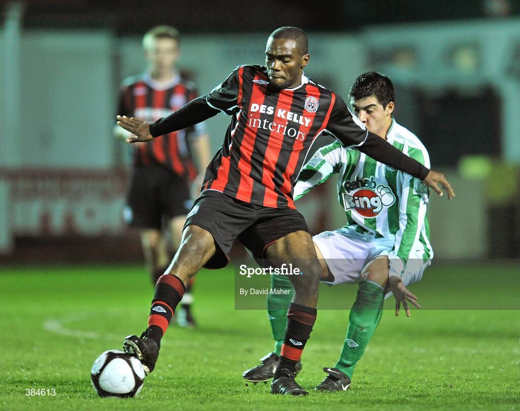 6 November 2009; Joseph Ndo, Bohemians, in action against Alehandro Reyes, Bray Wanderers. League of Ireland Premier Division, Bray Wanderers v Bohemians, Carlisle Grounds, Bray, Co. Wicklow. Picture credit: David Maher / SPORTSFILE