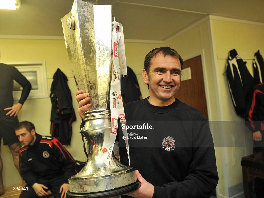 6 November 2009; Bohemians manager Pat Fenlon celebrates after winning the League of Ireland Premier Division title. League of Ireland Premier Division, Bray Wanderers v Bohemians, Carlisle Grounds, Bray, Co. Wicklow. Picture credit: David Maher / SPORTSFILE