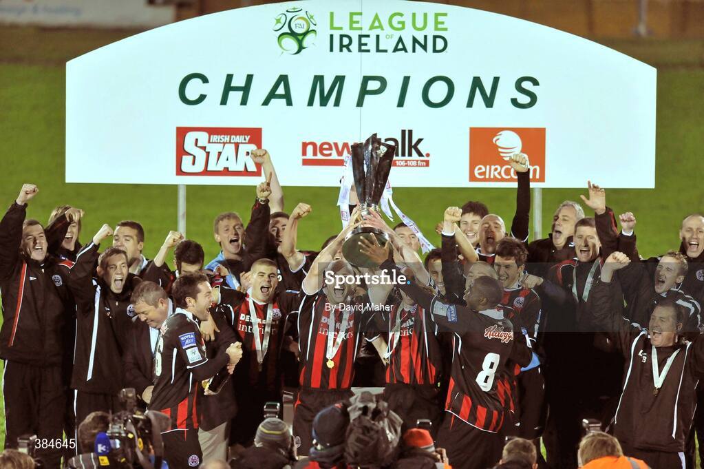 6 November 2009; Bohemians' players celebrate after winning the League of Ireland Premier Division title. League of Ireland Premier Division, Bray Wanderers v Bohemians, Carlisle Grounds, Bray, Co. Wicklow. Picture credit: Barry Cregg / SPORTSFILE