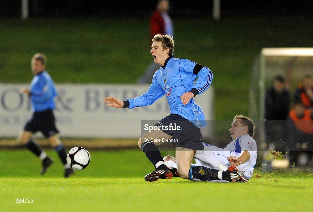 7 November 2009; Ronan Finn, UCD, in action against Seamus Long, Waterford United. League of Ireland First Division, UCD v Waterford United, Belfield Bowl, Dublin. Picture credit: Dàire Brennan / SPORTSFILE