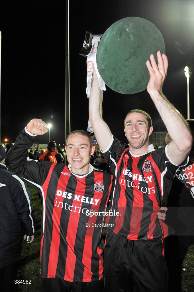 6 November 2009; Bohemians captain Owen Heary, right, celebrates with team-mate Glenn Cronin after with after winning the League of Ireland Premier Division title. League of Ireland Premier Division, Bray Wanderers v Bohemians, Carlisle Grounds, Bray, Co. Wicklow. Picture credit: David Maher / SPORTSFILE