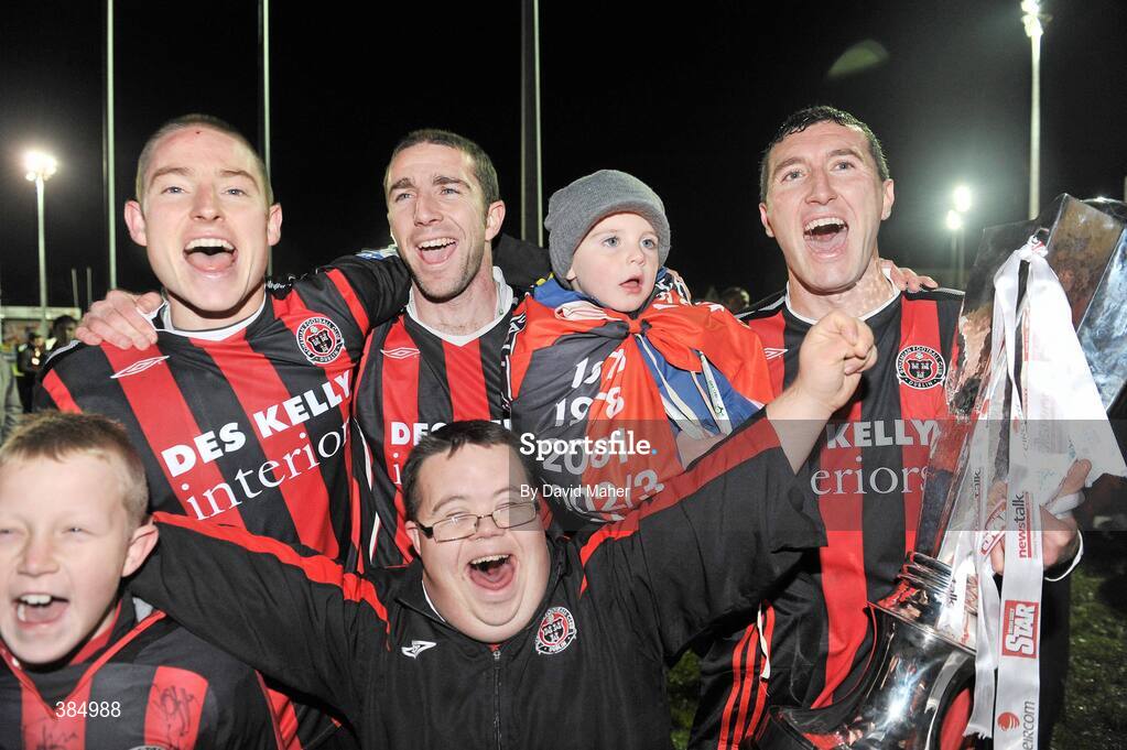 6 November 2009; Bohemians players left to right, Glenn Cronin, Owen Heary and Jason Byrne celebrate with supporters after with after winning the League of Ireland Premier Division title. League of Ireland Premier Division, Bray Wanderers v Bohemians, Carlisle Grounds, Bray, Co. Wicklow. Picture credit: David Maher / SPORTSFILE