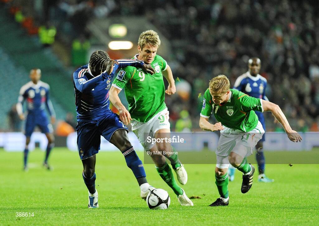 14 November 2009; Bacary Sagna, France, in action against Kevin Doyle, left, and Damien Duff, Republic of Ireland. FIFA 2010 World Cup Qualifying Play-off 1st Leg, Republic of Ireland v France, Croke Park, Dublin. Picture credit: Matt Browne / SPORTSFILE