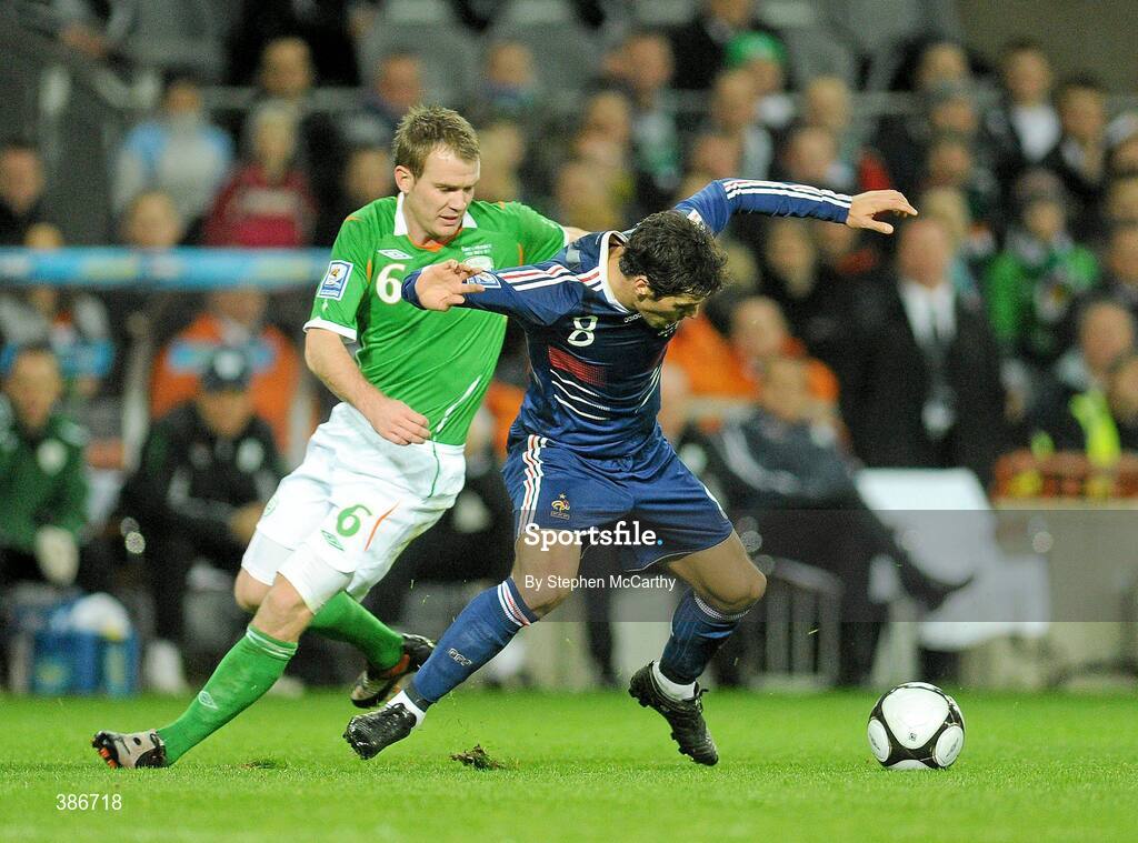 14 November 2009; Yoann Gourcuff, France, in action against Glenn Whelan, Republic of Ireland. FIFA 2010 World Cup Qualifying Play-off 1st Leg, Republic of Ireland v France, Croke Park, Dublin. Picture credit: Stephen McCarthy / SPORTSFILE