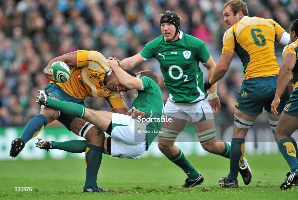 15 November 2009; Wycliff Palu, Australia, in action against Tomas O'Leary, Ireland, as Stephen Ferris and Rocky Elsom, right, look on. Autumn International Guinness Series 2009, Ireland v Australia, Croke Park, Dublin. Picture credit: Brian Lawless / SPORTSFILE