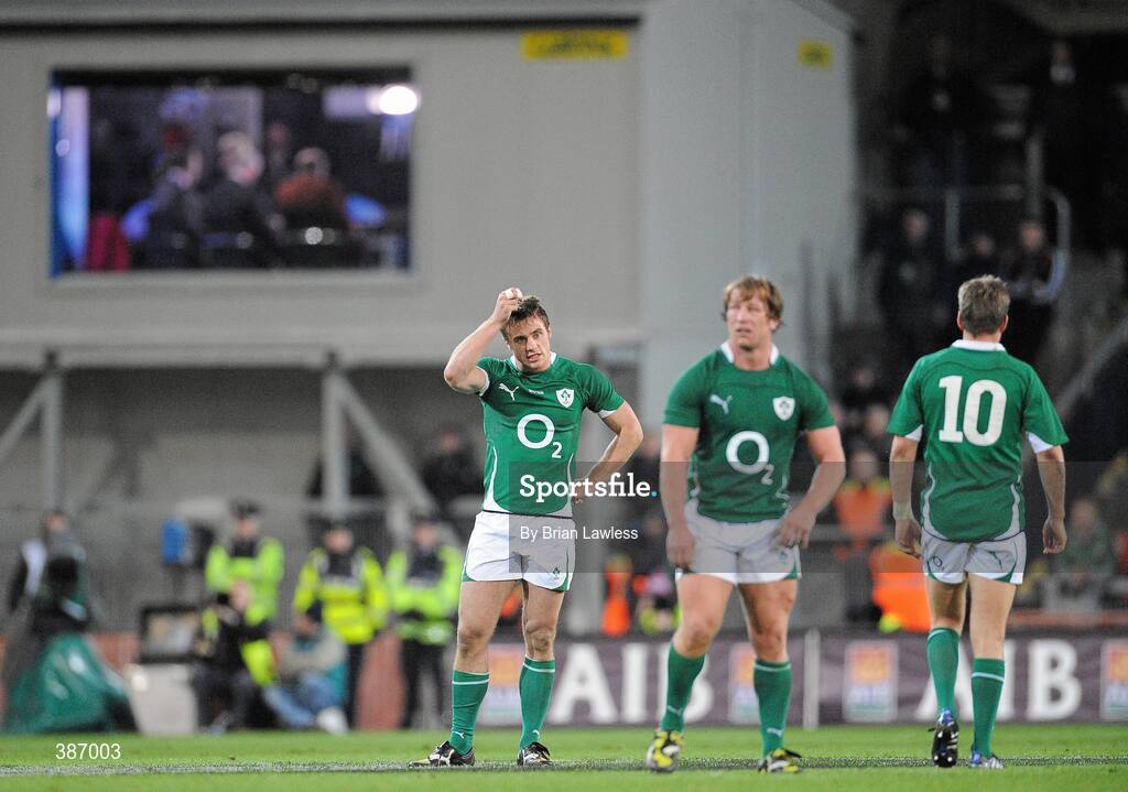 15 November 2009; Ireland's Tommy Bowe reacts to the No Try decision. Autumn International Guinness Series 2009, Ireland v Australia, Croke Park, Dublin. Picture credit: Brian Lawless / SPORTSFILE