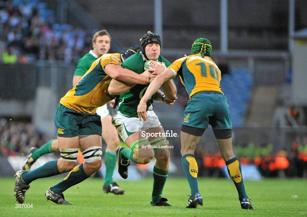 15 November 2009; Stephen Ferris, Ireland, in action against Mark Chisholm, left, and Matt Giteau, Australia. Autumn International Guinness Series 2009, Ireland v Australia, Croke Park, Dublin. Picture credit: Brian Lawless / SPORTSFILE
