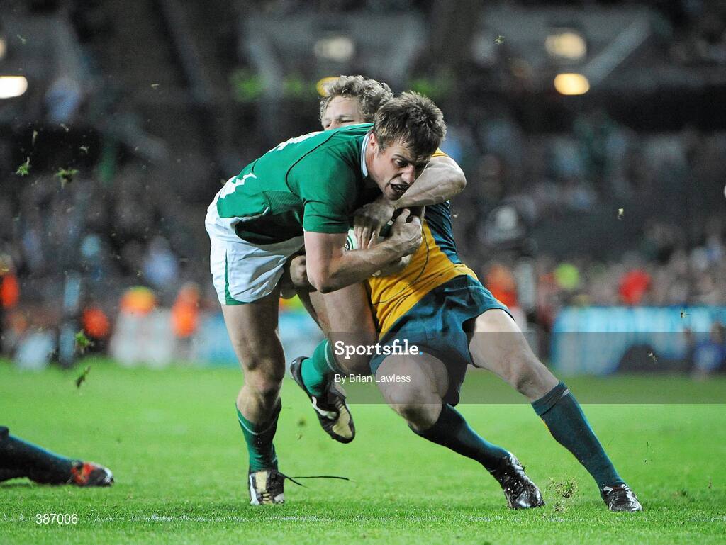 15 November 2009; Tommy Bowe, Ireland, is prevented from scoring a try by Peter Hynes, Australia. Autumn International Guinness Series 2009, Ireland v Australia, Croke Park, Dublin. Picture credit: Brian Lawless / SPORTSFILE