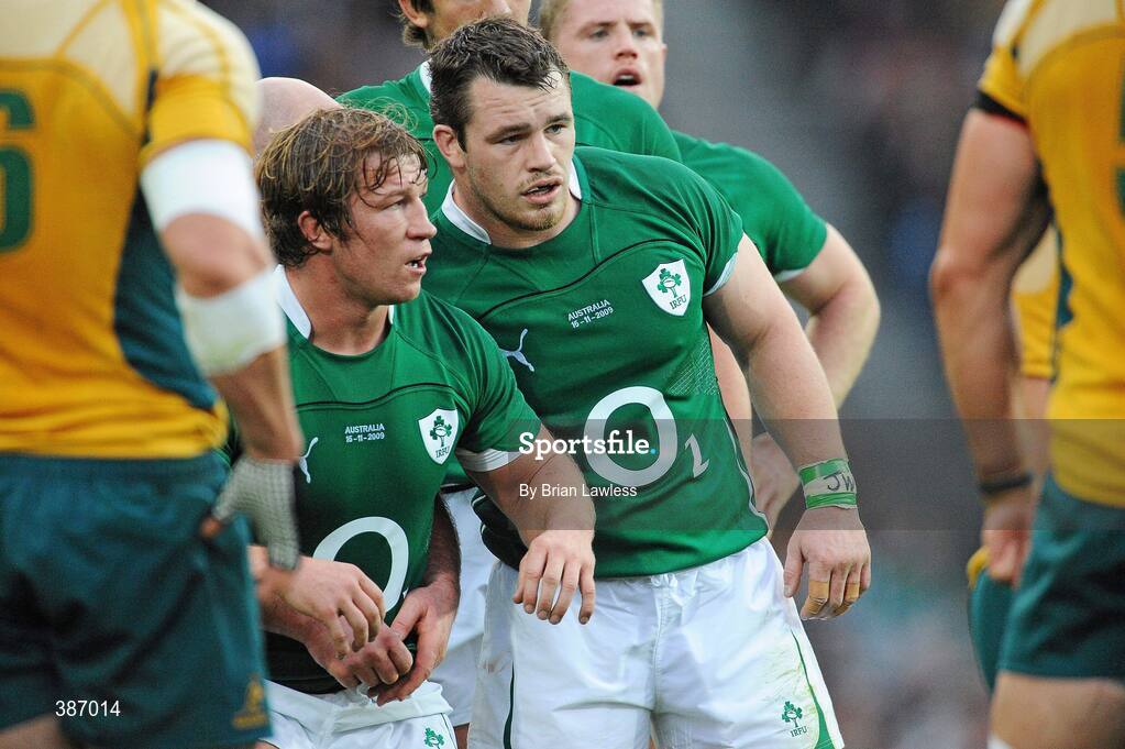 15 November 2009; Ireland's Cian Healy and Jerry Flannery during the match. Autumn International Guinness Series 2009, Ireland v Australia, Croke Park, Dublin. Picture credit: Brian Lawless / SPORTSFILE